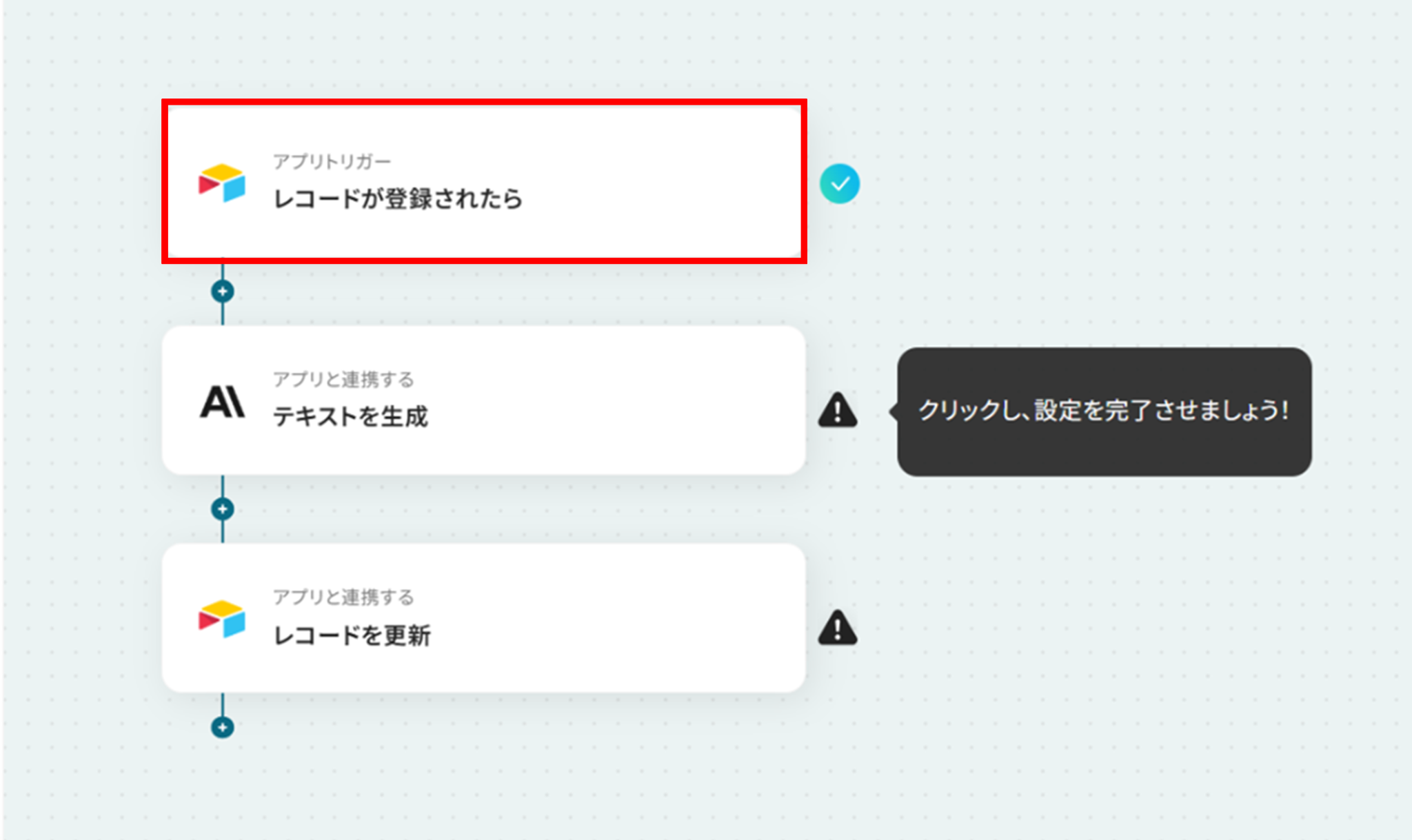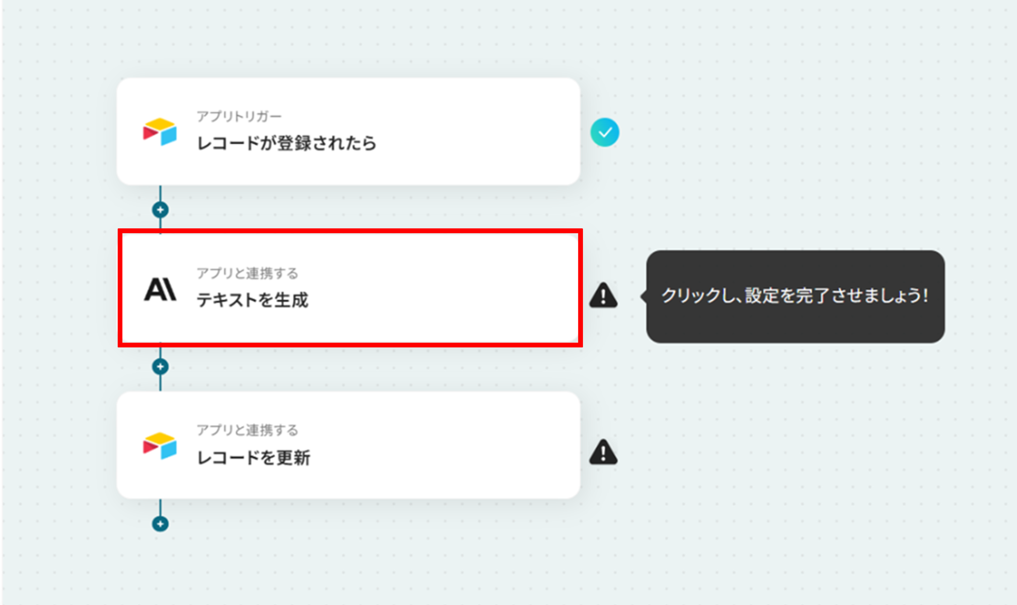 Anthropic(Claude)のテキスト生成アクションでは、生成したい文章の要件や用途に応じて、任意のモデルを設定することが可能です Google スプレッドシートへのレコード追加アクションでは、記録先となる任意のスプレッドシートIDと、対象のシート名(タブ名)をそれぞれ設定してください ■注意事項