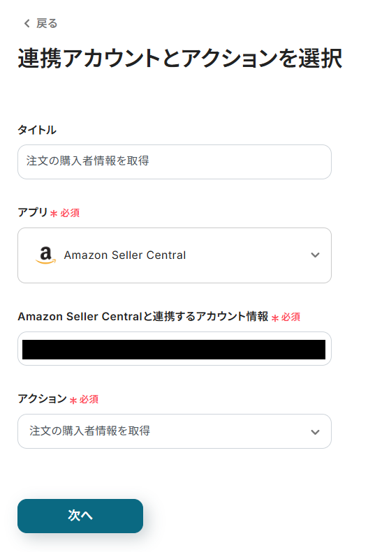 ステップ4:Amazon Seller Centralから注文の購入者情報を取得する設定