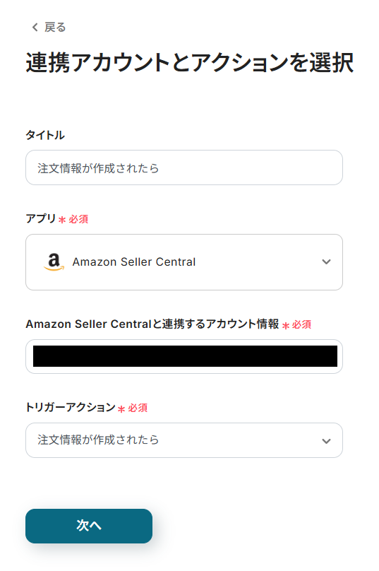 次に、Amazon Seller Centralのトリガー設定を行います。