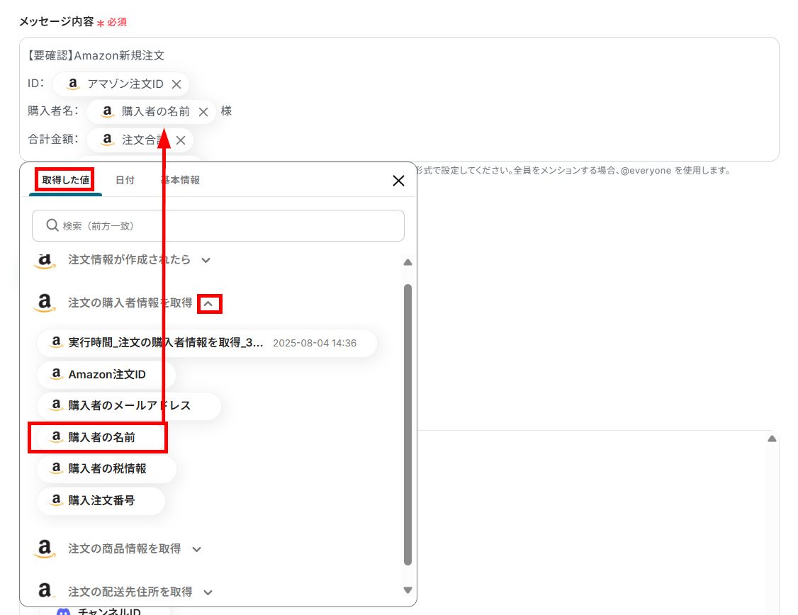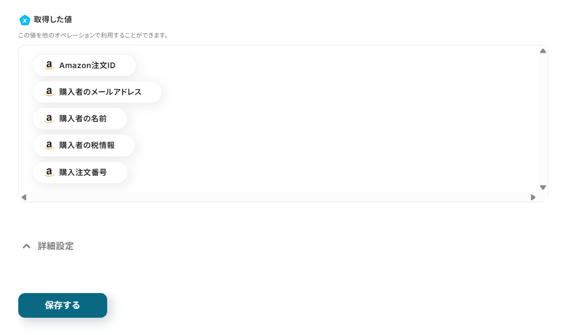 次に、ステップ3で取得した注文IDを利用して、Amazon Seller Centralから購入者情報を取得する設定を行います。