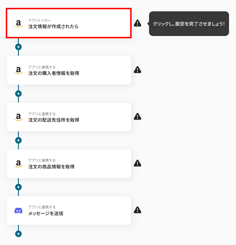 今回は「Amazon Seller Centralで注文情報が作成されたら、Discordに通知する」フローを作成していきます!