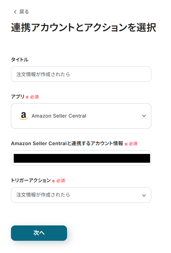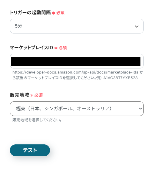 続いて、Amazon Seller Centralのトリガー設定を行います。