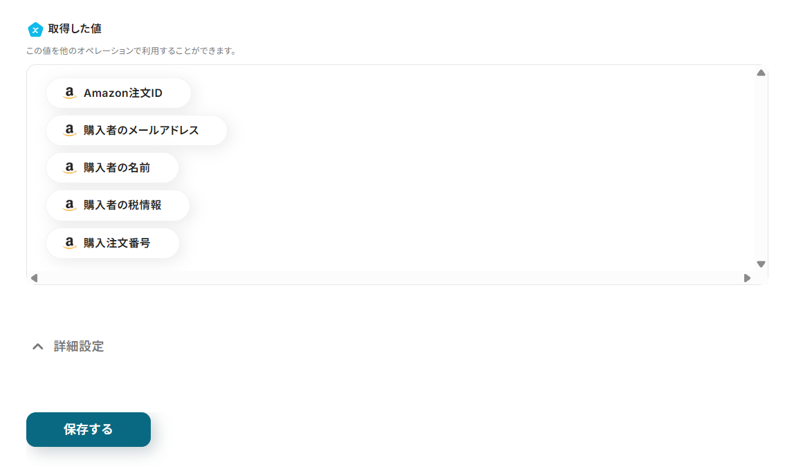 次に、ステップ3で取得した注文IDを利用して、Amazon Seller Centralから注文の購入者情報を取得する設定を行います。