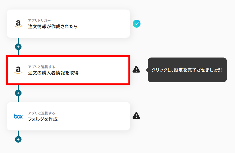 - Amazon Seller Centralのトリガーとアクション設定およびBoxのアクション設定