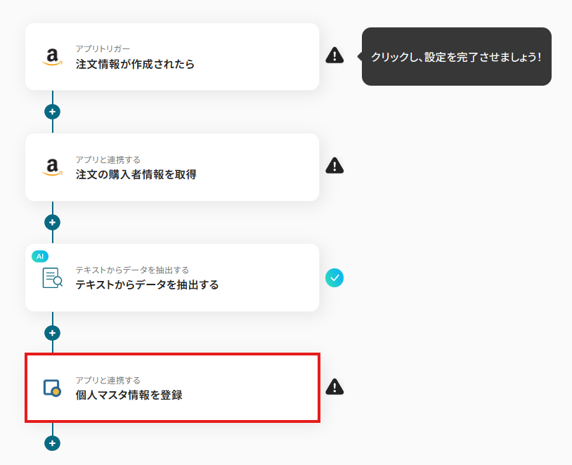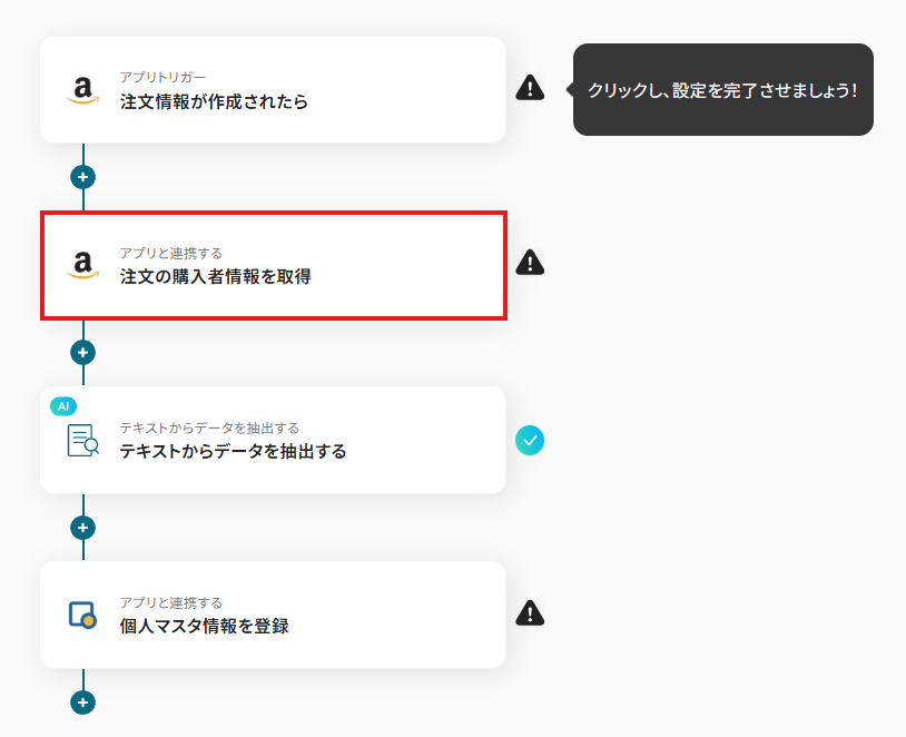 「Amazon Seller Centralで特定の注文情報が作成されたら、List Finderに個人マスタ情報を登録する」