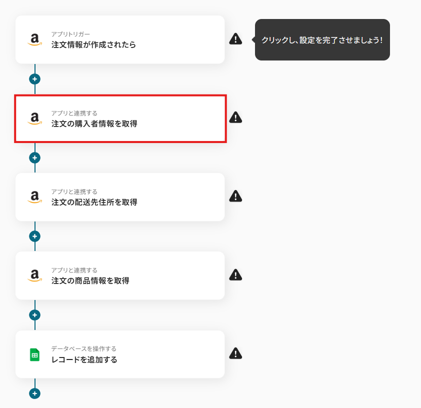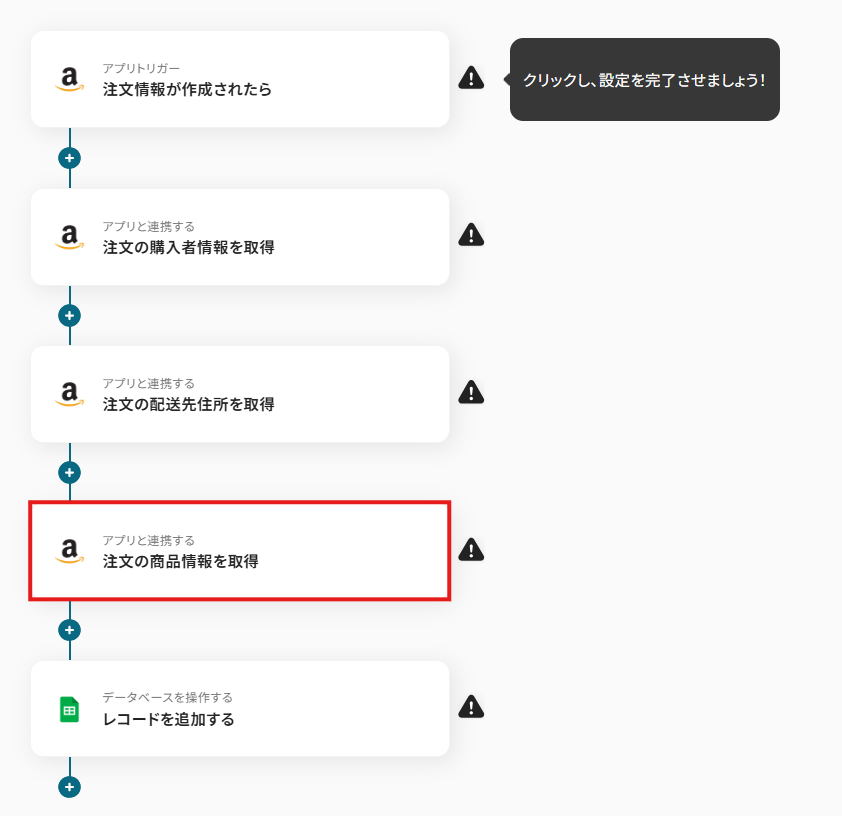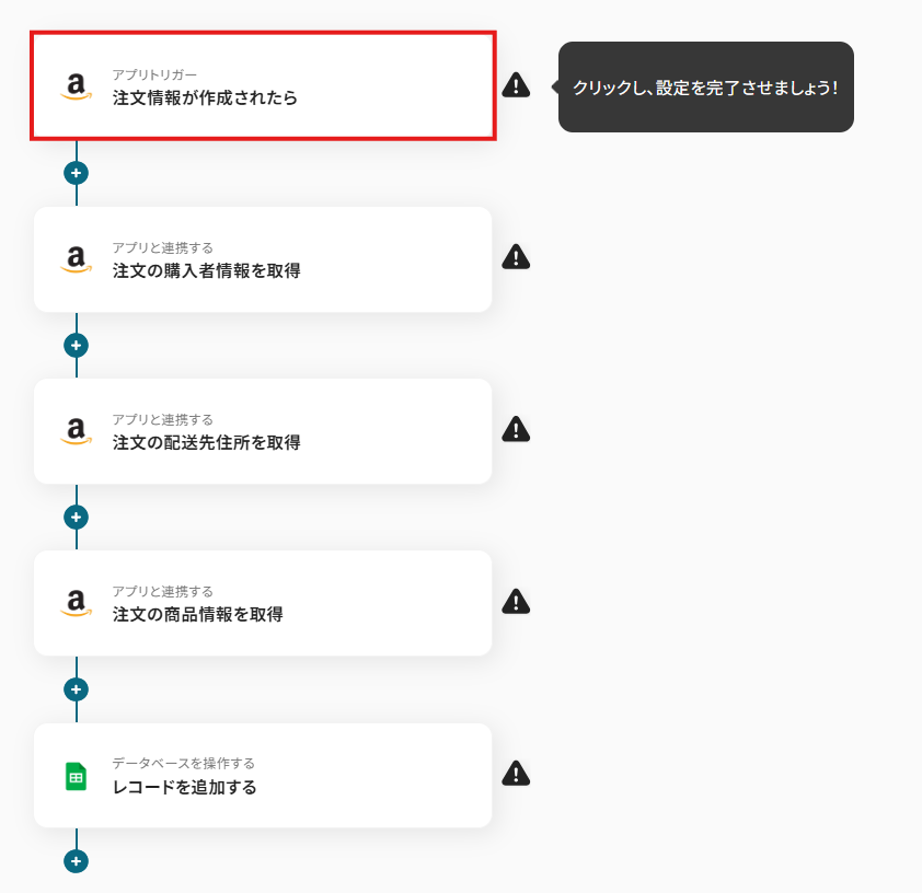それではここから代表的な例として、Amazon Seller Centralで新しい注文情報が作成された際に、その内容をGoogle スプレッドシートの指定したシートに自動で追加するフローを解説していきます!