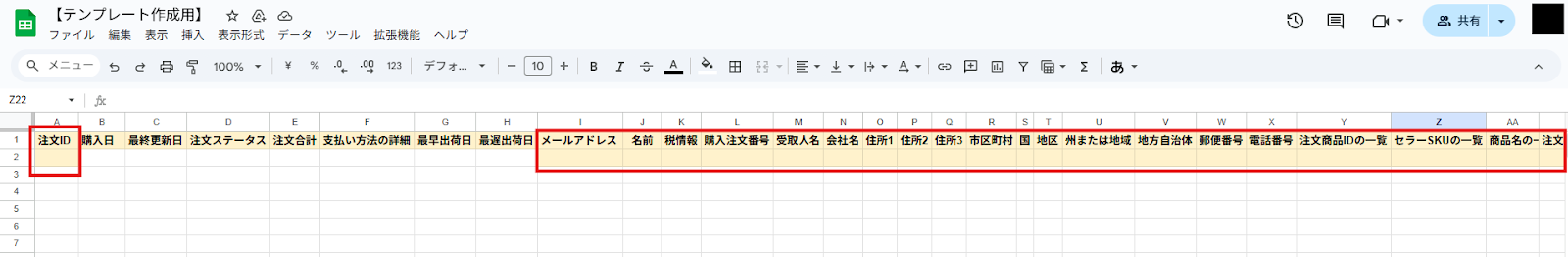 さらにGoogle スプレッドシートで、 注文情報を追加するシートを作成しておきましょう!