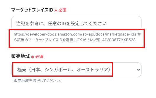 4.「マーケットプレイスID」は、入力欄下の説明に従って、入力してください。