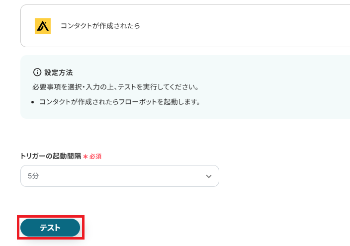作成するコンタクトは、架空の情報(「テスト会社」や「テスト太郎」など)でOKです。