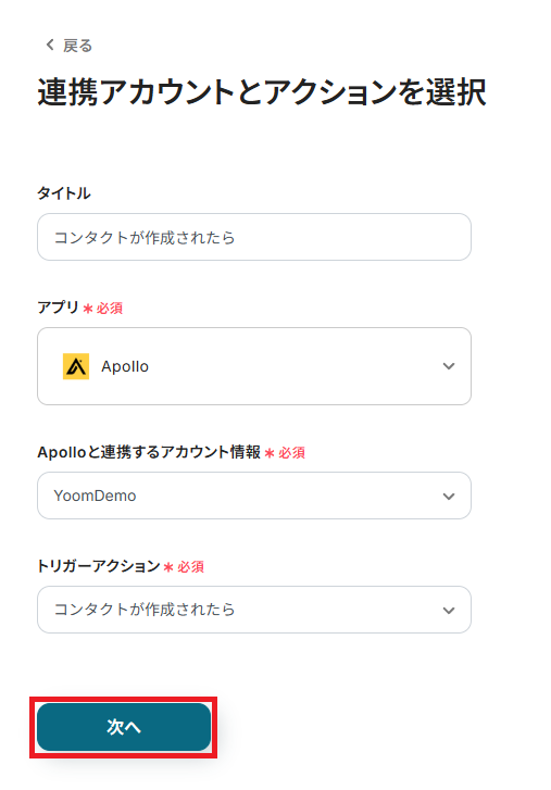 Apolloと連携するアカウントに間違いがないかを確認し、「次へ」をクリックしましょう。