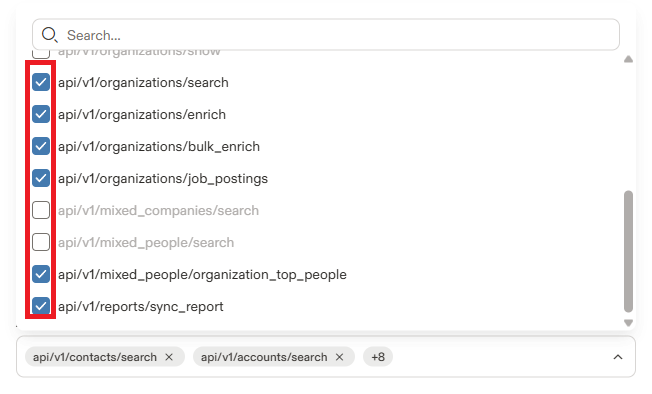 「APIs」は、プルダウンの全ての項目にチェックを入れます。