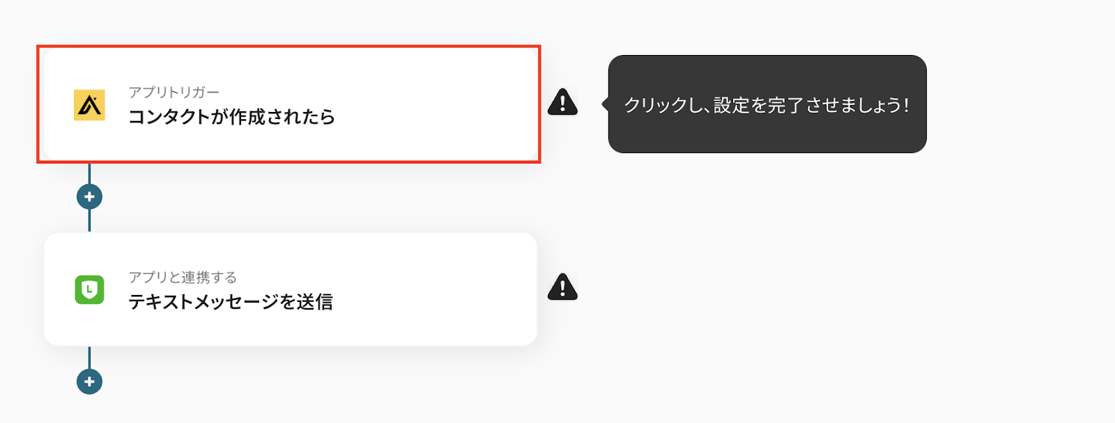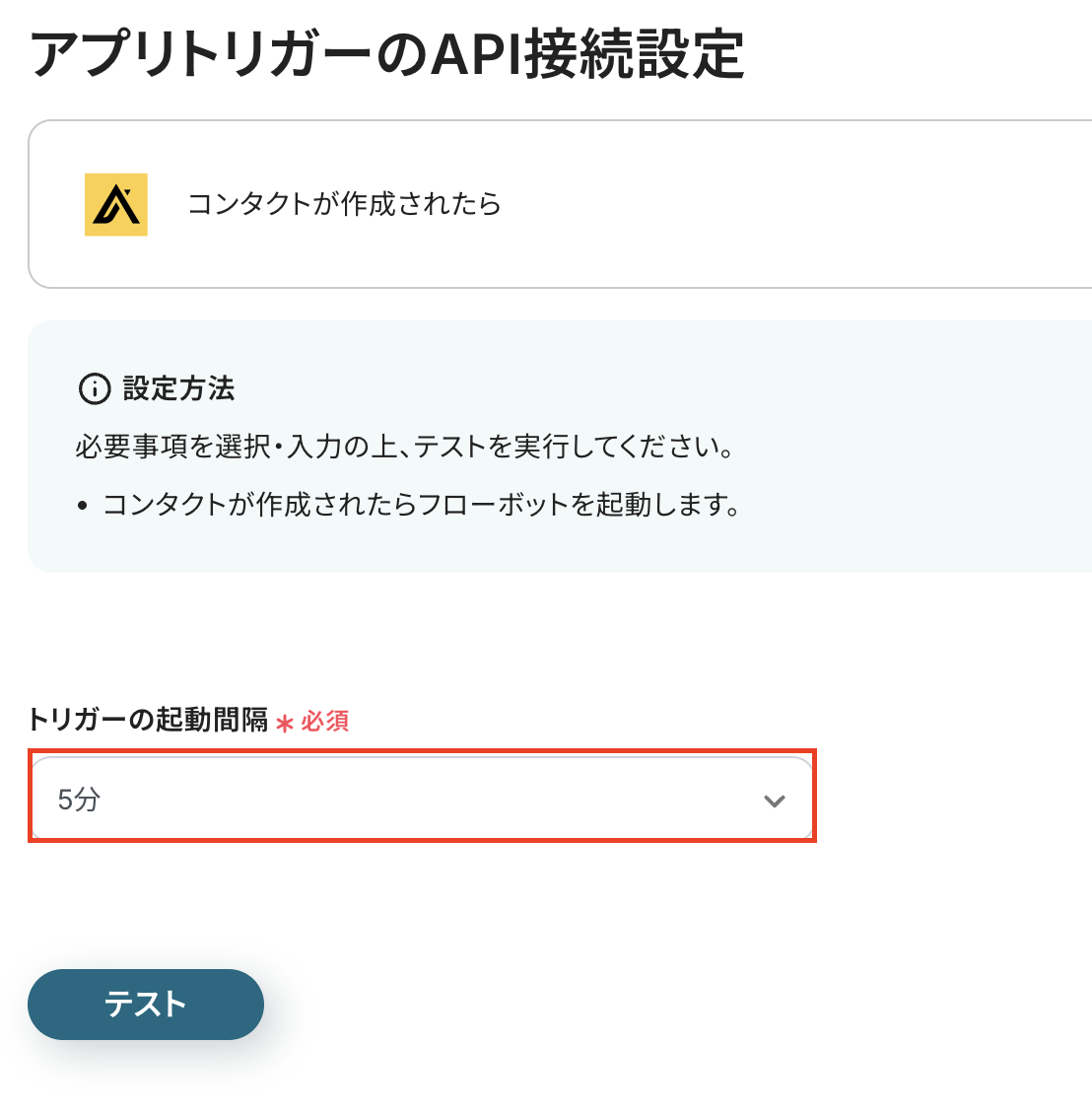 アプリトリガーのAPI接続設定を行い、ノーコードでコンタクトが作成されたという情報を取得できるようにします。