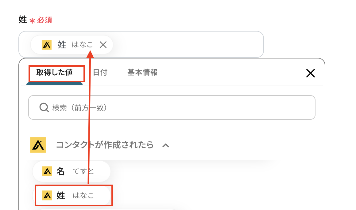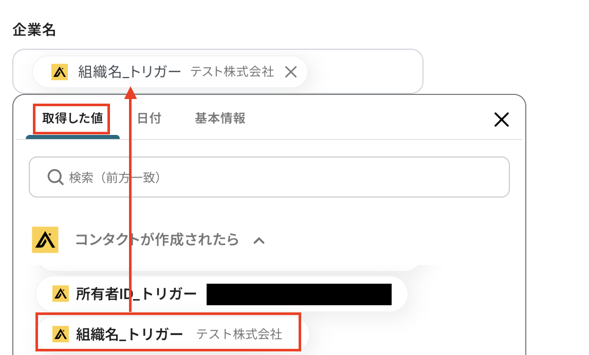 企業名はApolloの取得した値から「組織名」を選択してください。