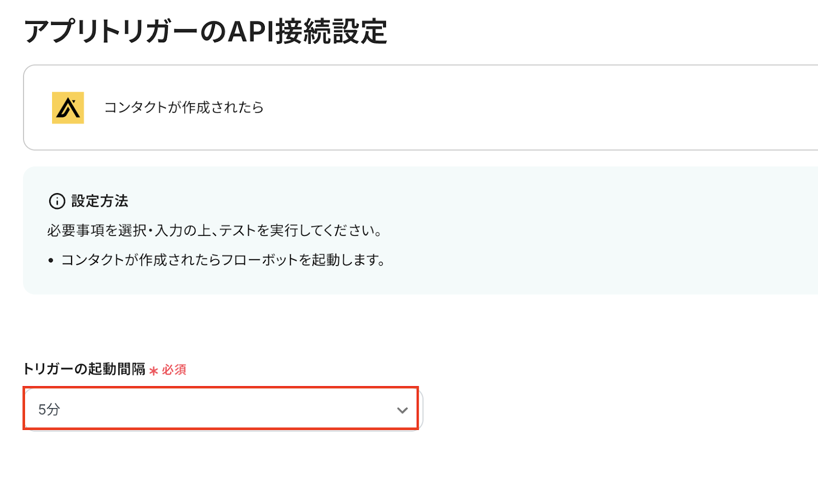 アプリトリガーのAPI接続設定を行い、コンタクトが作成された情報を自動的に取得できるようにしましょう。