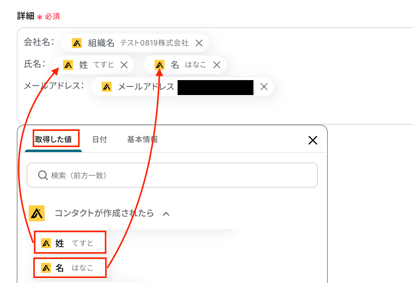 コンタクト作成が完了したら、再度Yoomに戻りテストをクリックしましょう。