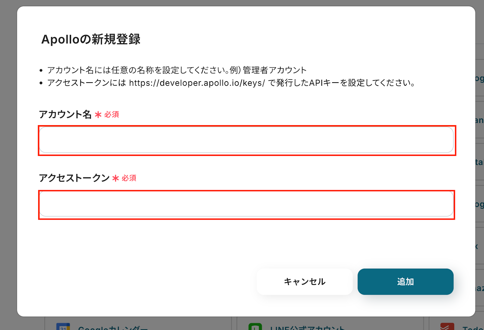 - Apolloと連携するアカウント情報を確認しておきましょう。