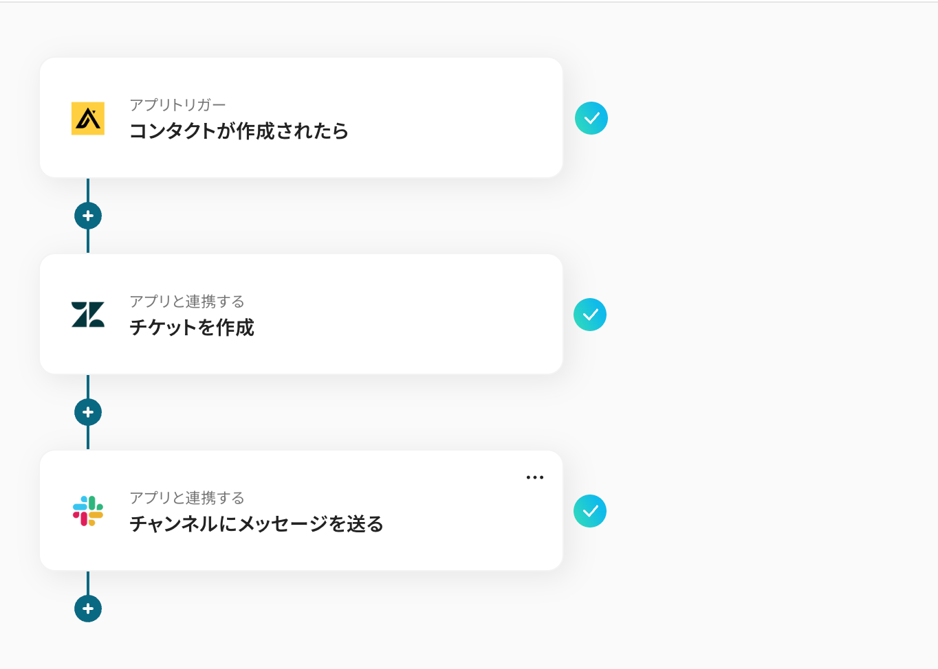 このワークフローを活用すれば、Apolloでコンタクトが作成されると自動でZendeskにチケットが作成されるため、ApolloとZendesk間の連携をスムーズに実現し、業務を効率化できます。
