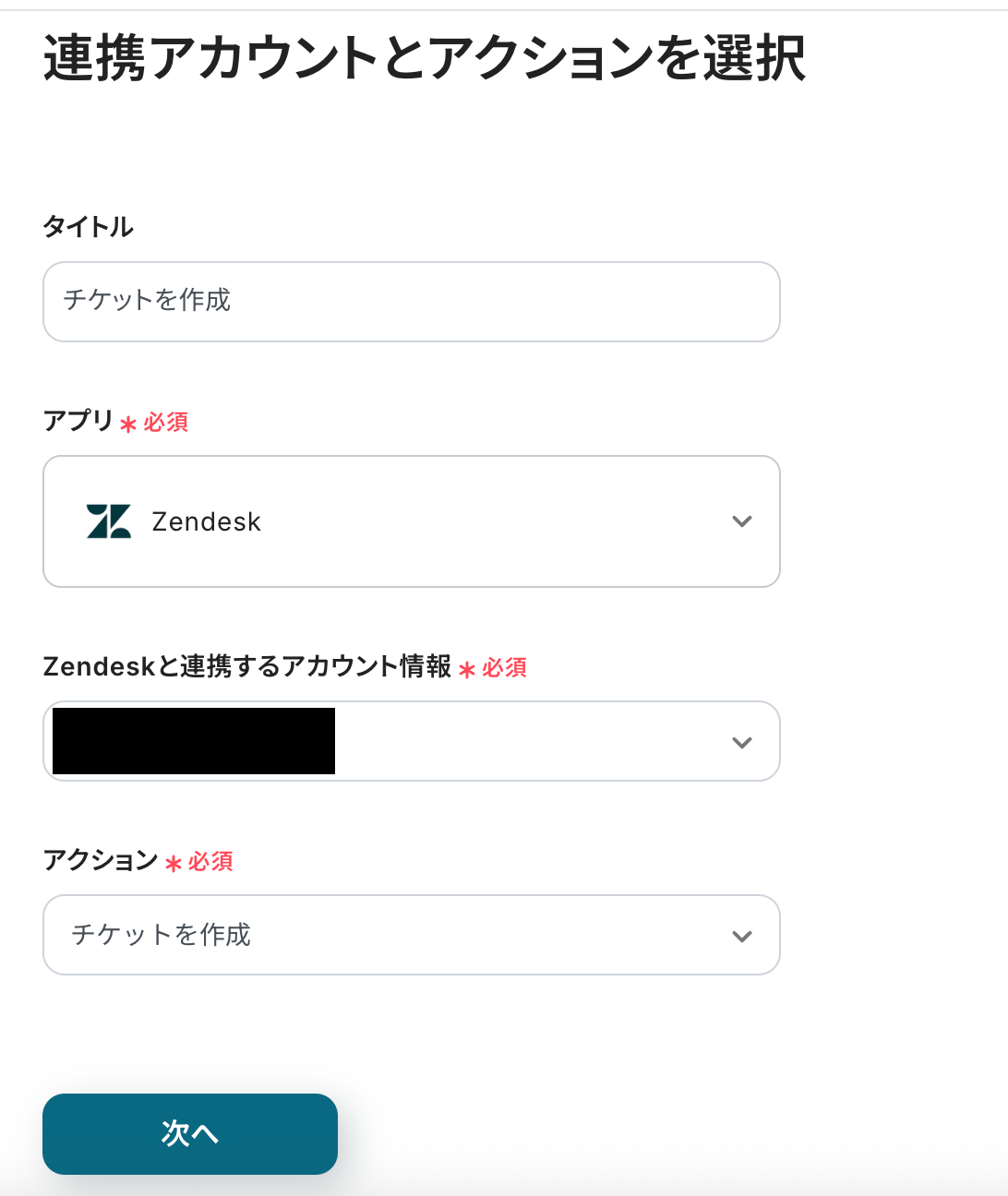 ステップ4:Zendeskのアクションを設定しよう(チケットを作成)