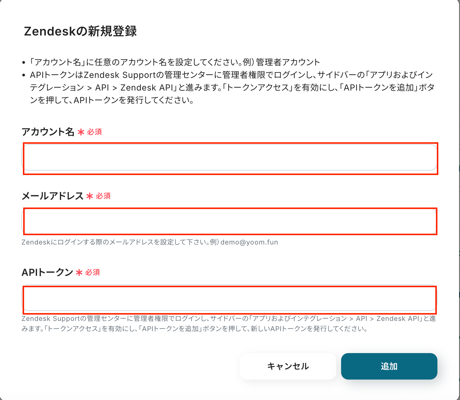 ・Zendesk、ApolloのそれぞれとYoomを連携してください。
