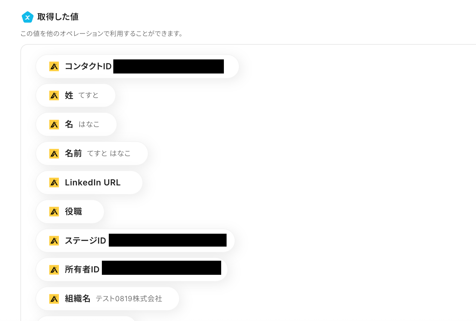 ここで取得した値を活用して、次のオペレーションを設定します。