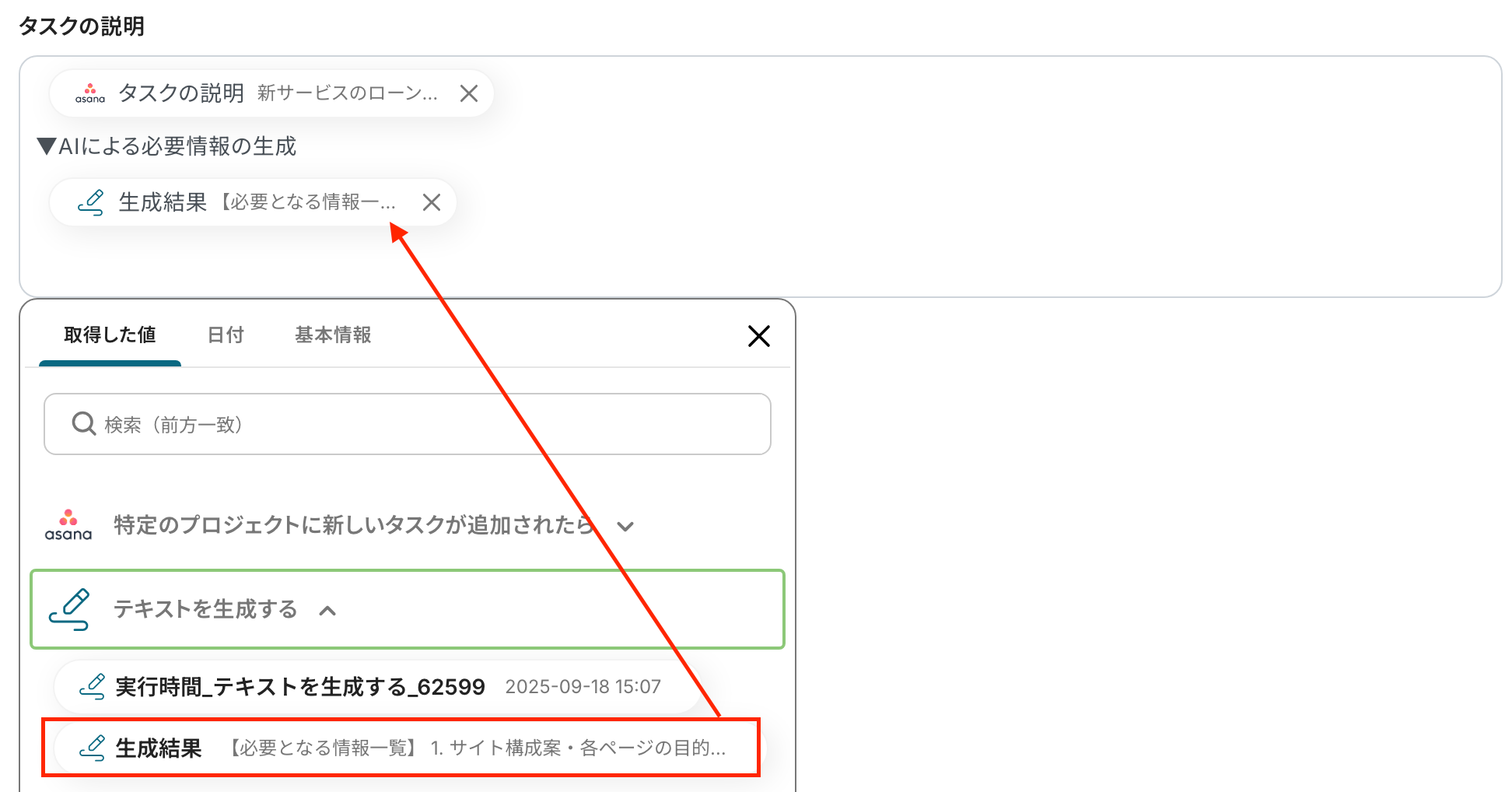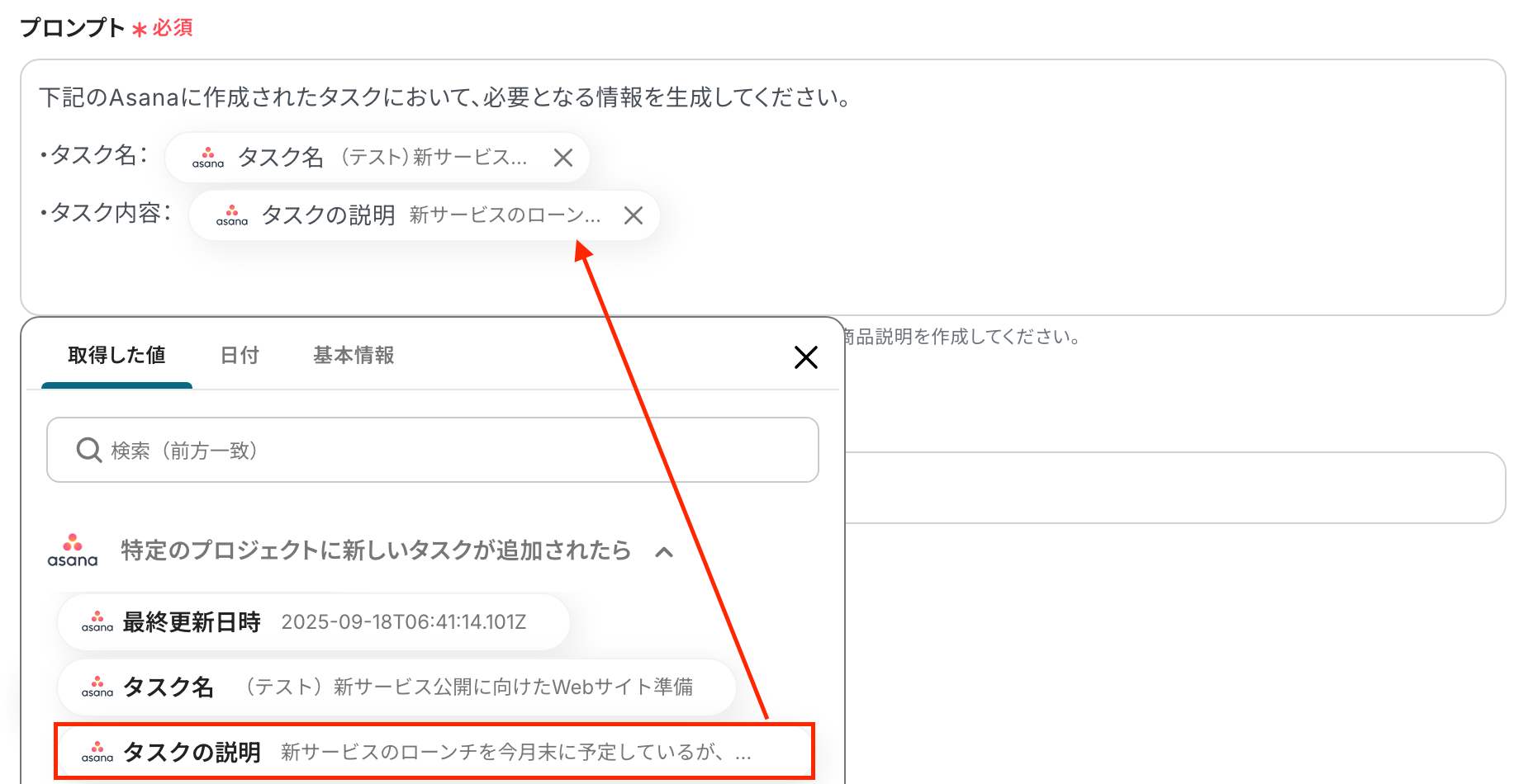 Asanaに特定のタスクが作成されたら、AIで必要な情報を生成し追加する