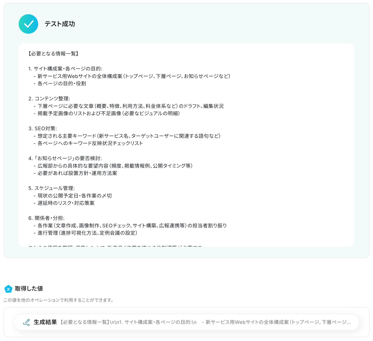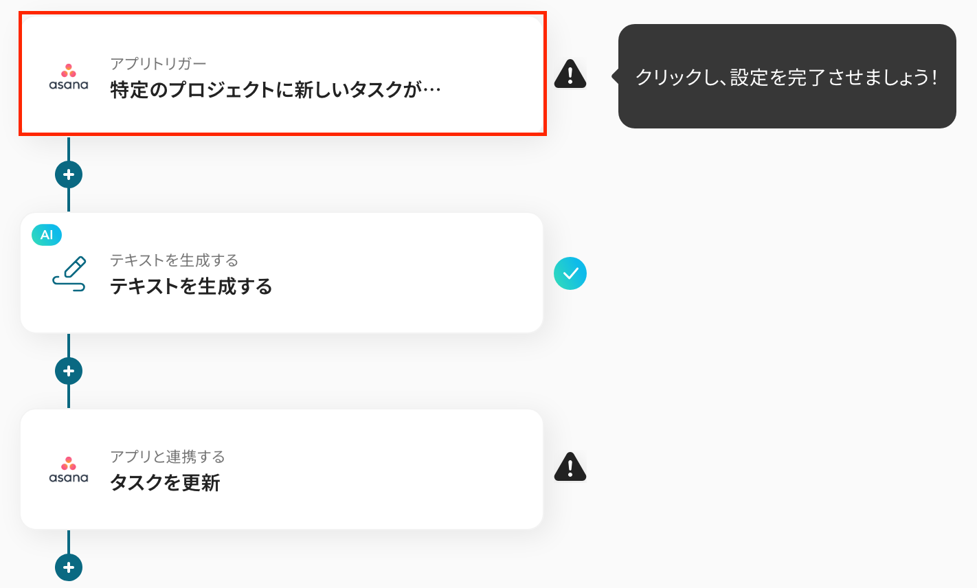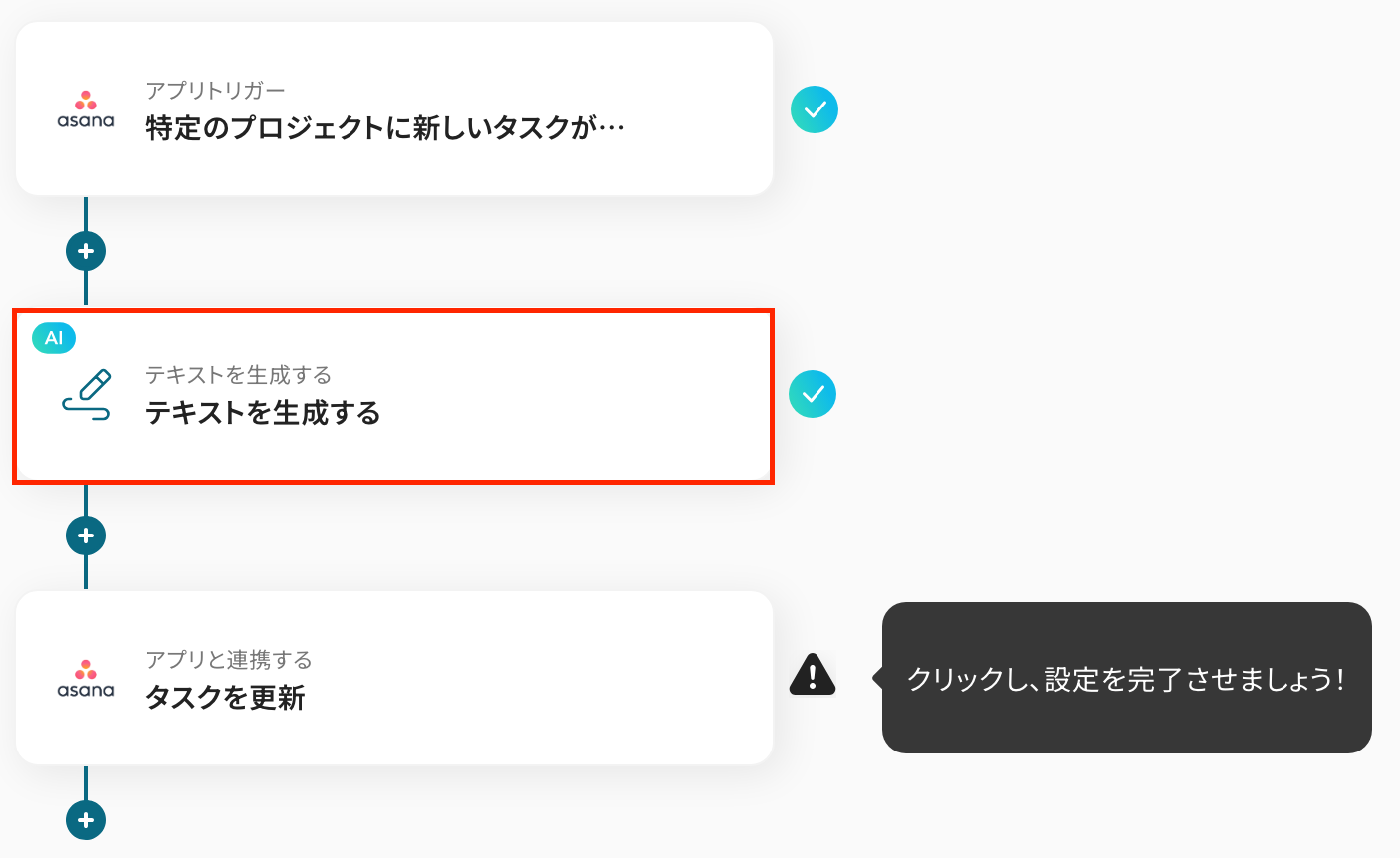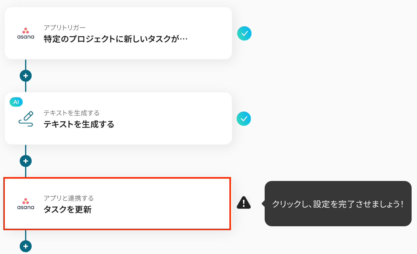 以上で、「Asanaにタスクが作成されたら、AIで必要な情報を生成し追加する」フローの完成です。