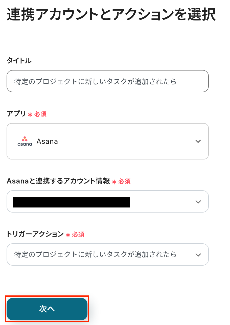 - Asanaのトリガー設定およびAsanaのアクション設定