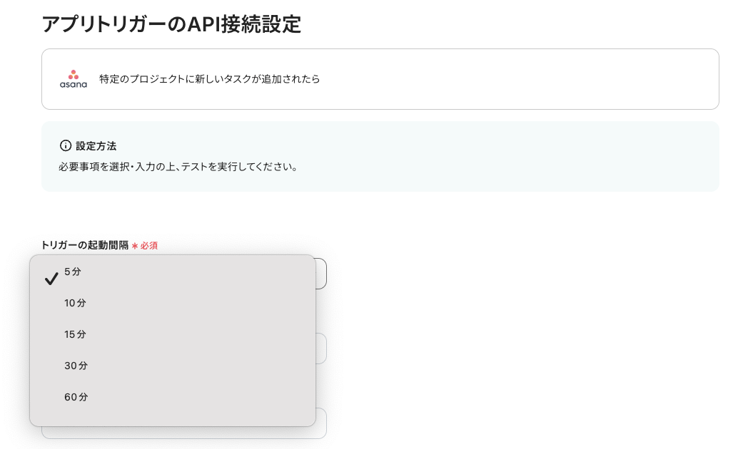 ・トリガーは5分、10分、15分、30分、60分の間隔で起動間隔を選択できます。