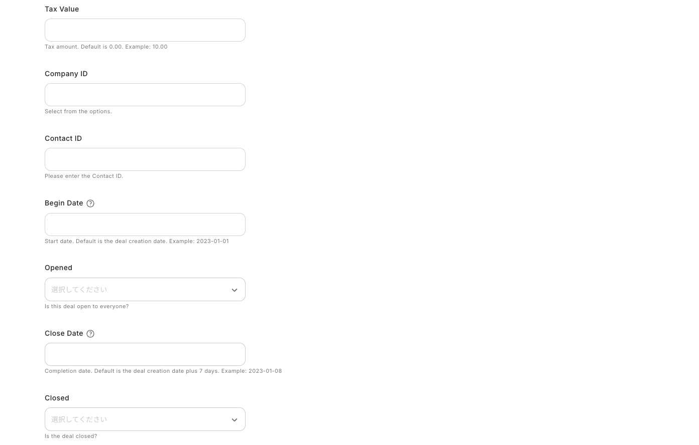 ・GitHubでIssueを作成する際、CommentにBitrix24で設定するDeal Title、Deal Type ID、Category ID、Stage IDを記載してください。