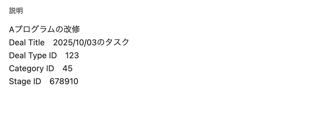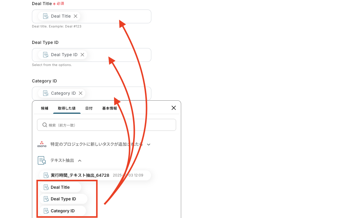 A:今回のフローボットでは、 Asanaで登録した「タスクの説明」からDeal Titleなどの情報を抽出するように設定しています。