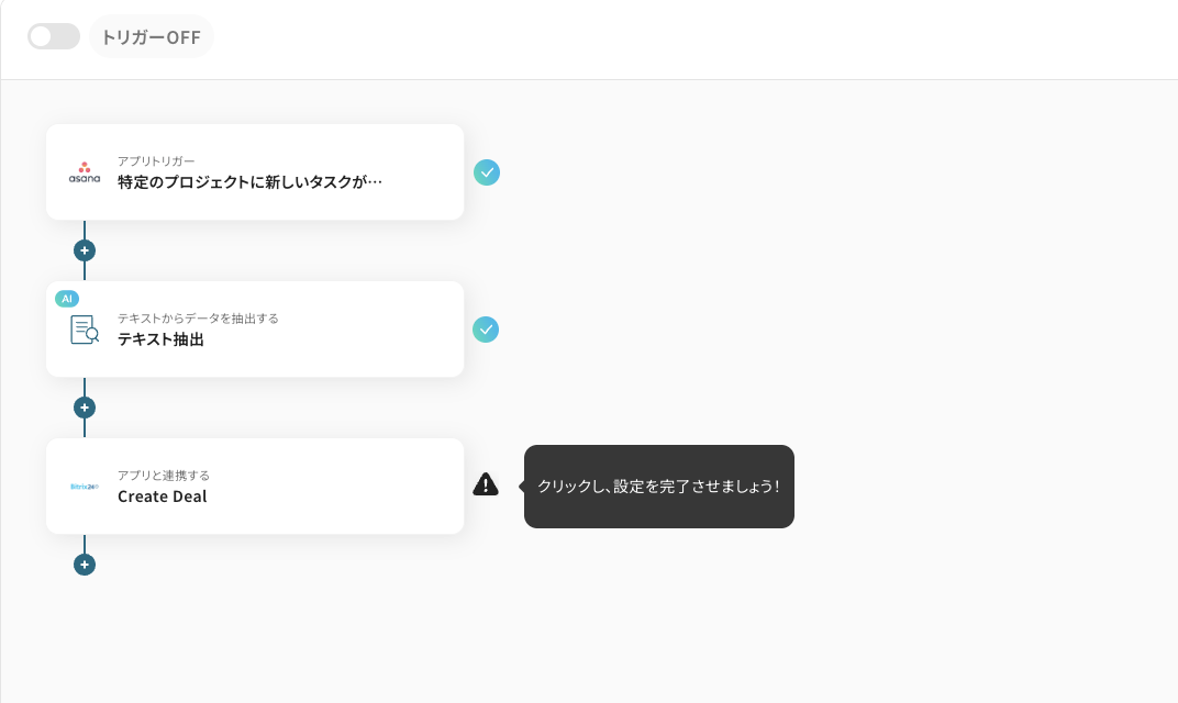 それでは、実際にAsanaとBitrix24を連携したフローを作成してみましょう。