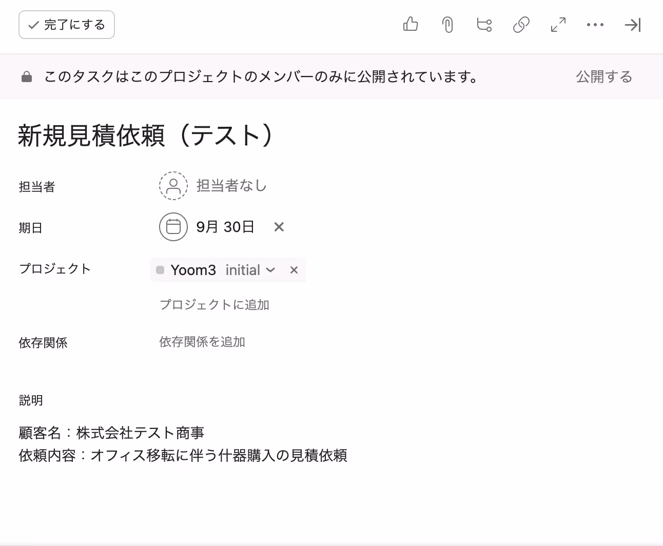 そのため、タスク内には必ず顧客名を含めてください。