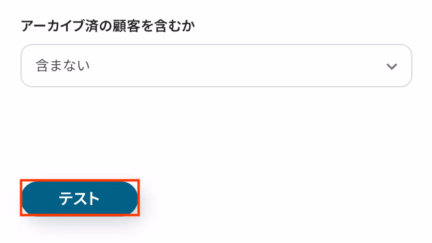 入力が完了したら「テスト」をクリックし、設定した内容をもとに顧客リストが正しく取得できるか確認しましょう。