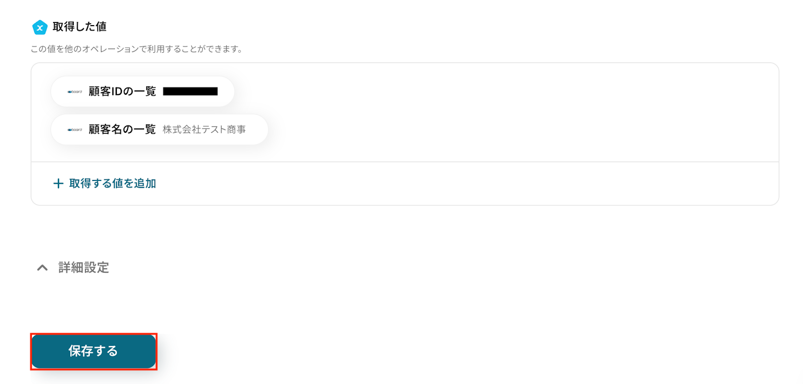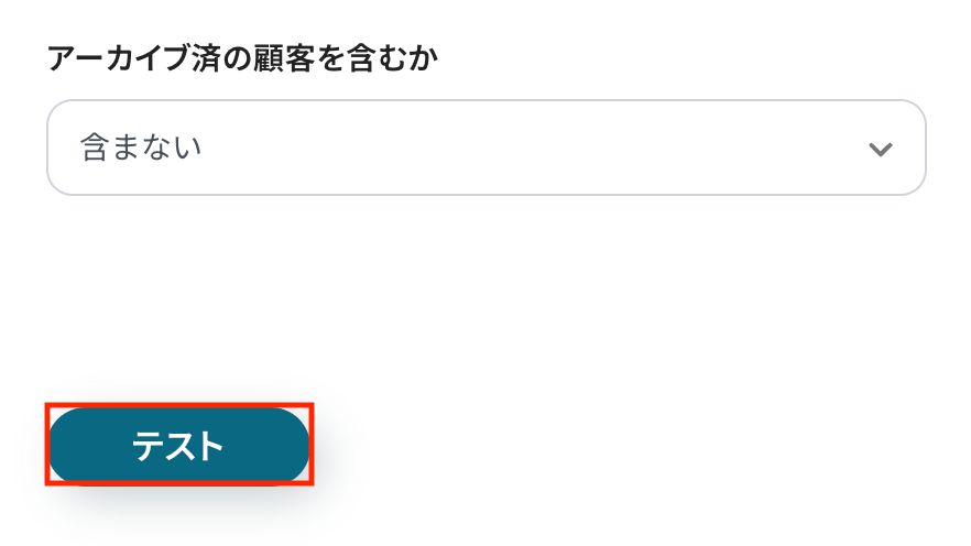 タグが設定されていないと、「顧客リストの取得」アクション実行時に顧客が見つからず、案件登録が失敗してしまうのでご注意ください。