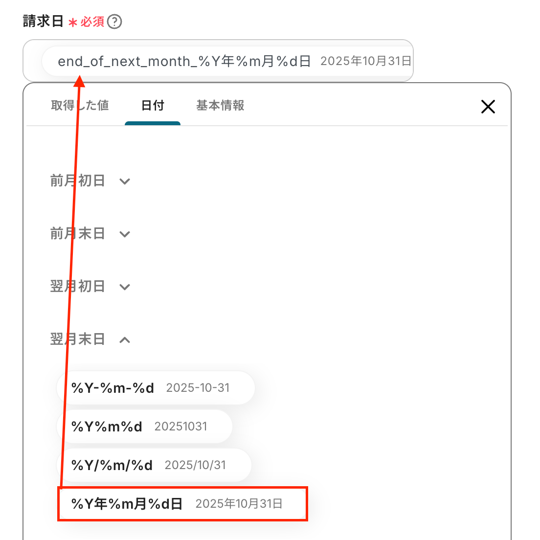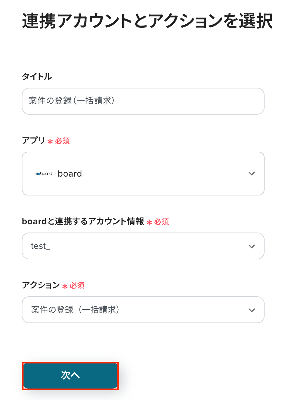 また、顧客名は事前にboardに登録した顧客名と同じ表記で設定しましょう。