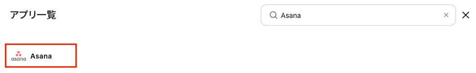 新規接続を押したあと、アプリのメニュー一覧が表示されるのでAsanaと検索し対象アプリをクリックしてください。