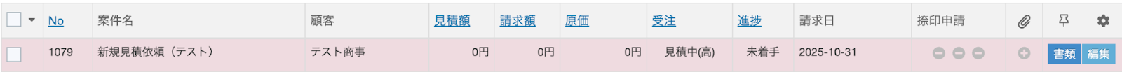 テストが成功すると、登録された案件の情報が一覧で表示されます。