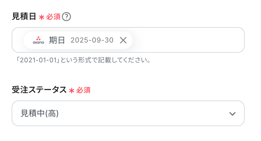Asanaで特定のプロジェクトに関連するタスクが「完了」ステータスになったことをトリガーとして、そのタスクに含まれる顧客情報をboardに自動で登録する連携です。