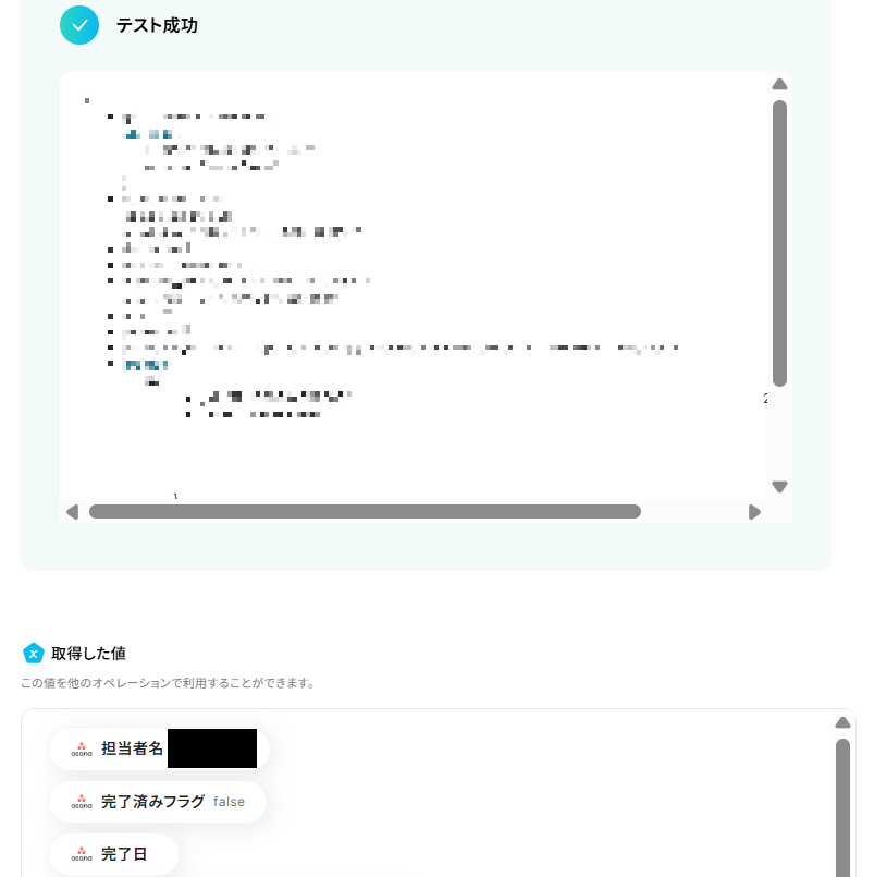 ※取得した値 とは? トリガーやオペレーション設定時に、「テスト」を実行して取得した値のことを指します。 後続のオペレーション設定時の値として利用でき、フローボットを起動する度に変動した値となります。