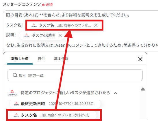 Asanaのトリガー設定およびOpenAIのアクション設定