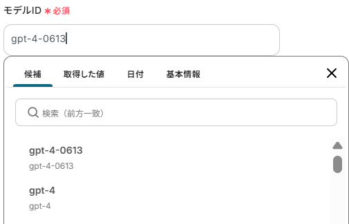 文章作成に使うChatGPTのバージョンを選びます。 今回はgpt-4-0613にしました。
