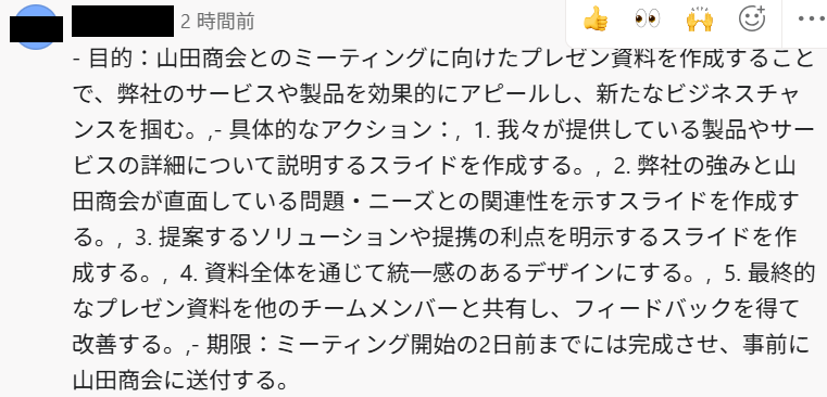 メッセージコンテンツ :以下のタスクの情報に基づき、担当者がすぐに作業を開始できるように、**タスクの目的、具体的なアクション、および期限の目安(あれば)**を含んだ、より詳細な説明文を生成してください。