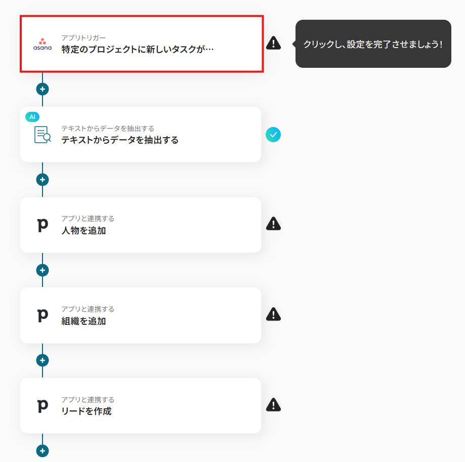 今回は「Asanaで新しいタスクが追加されたら、Pipedriveで新しいリードを作成する」フローを作成していきます!
