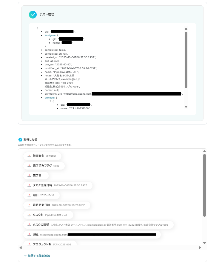 ※後続のAsanaのトリガー設定時のテストで必要になります。