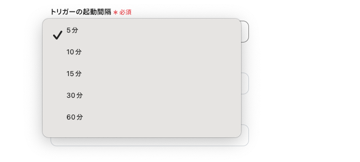 ※トリガーの起動タイミングは、5分、10分、15分、30分、60分のいずれかで設定できます。