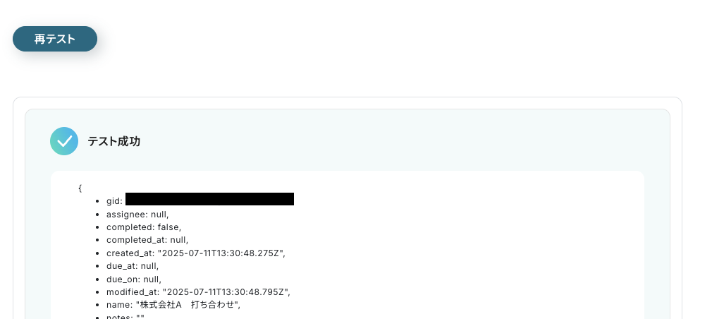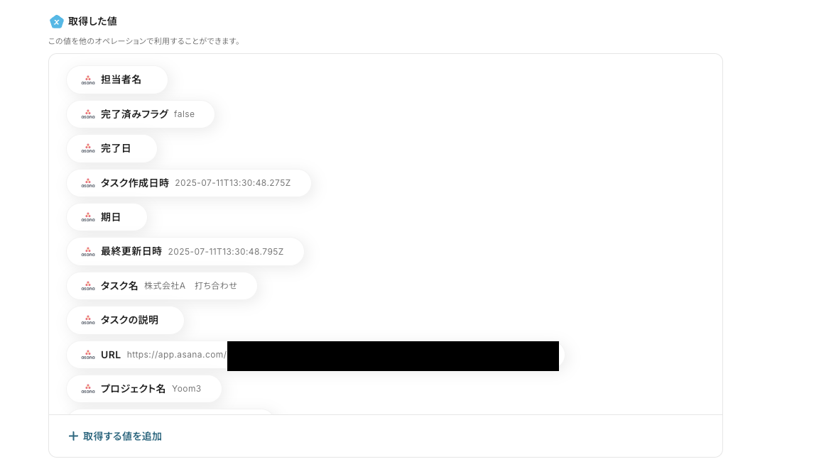 アウトプット情報は、「この値を他のオペレーションで利用することができます。」という注釈の通り、この後のステップで引用・活用できます。