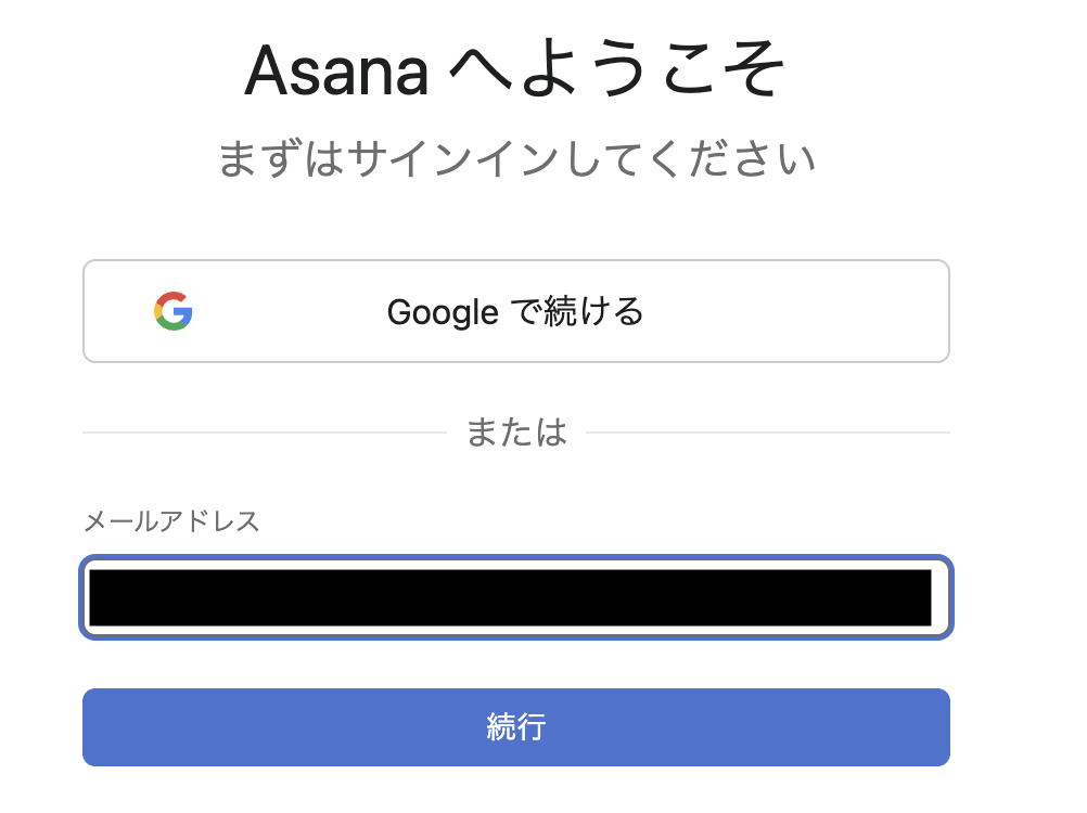移行後の画面で、お持ちのアカウントに登録しているメールアドレスを入力し、[続行]をクリックしてください。