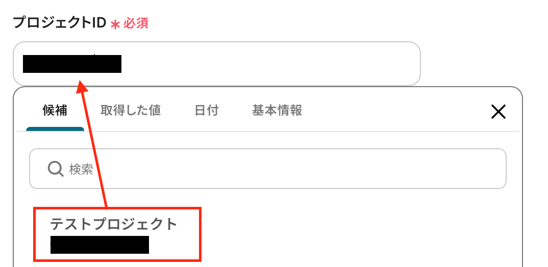 - Asanaのトリガー設定では、連携の対象としたいプロジェクトを任意で選択してください