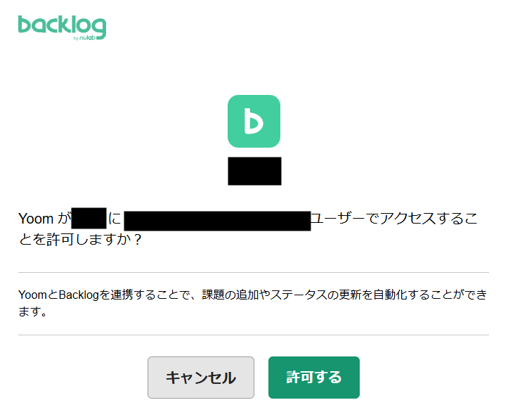 Yoomへのアクセスを許可すると、連携が完了です。