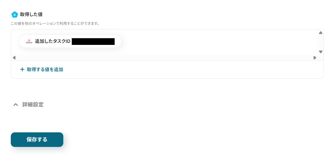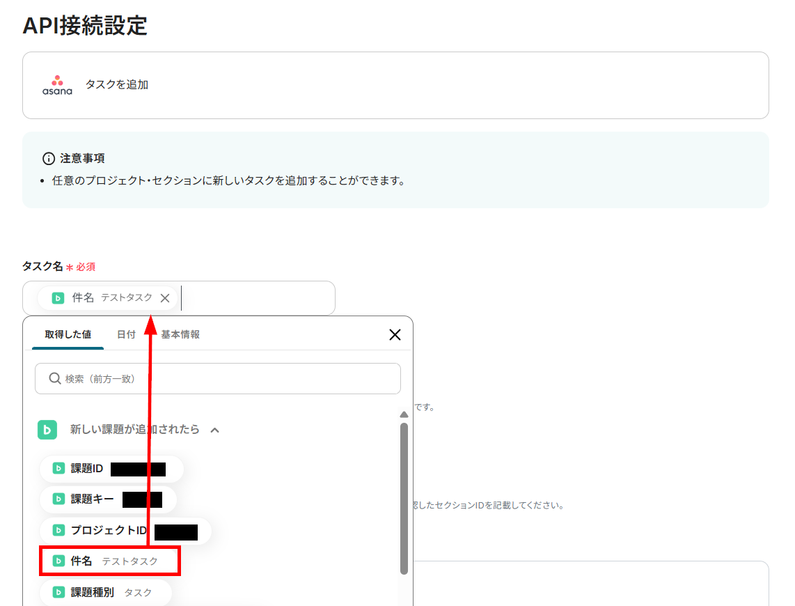 Asanaに追加するタスクの情報を設定します。